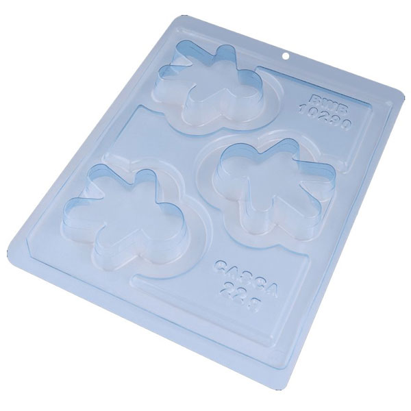 Special mold with silicone (3 parts), ideal for producing chocolates with much more practicality and precision. It has a “mark” indicating the required amount of chocolate, taking it to the fridge only once. It provides a uniform peel and a perfect finish always with the same weight.